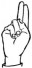 На ћирилици написано ВАЛЕНТИНА ГОДОЧЕВИЋ састоји се из 18 слова [?]. Исписано ћириличном једноручном азбуком за глувонеме: